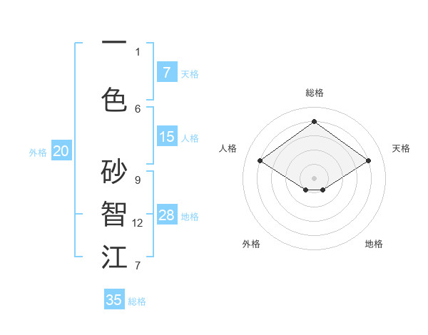 一色 砂智江さんを姓名の画数から五運を鑑定