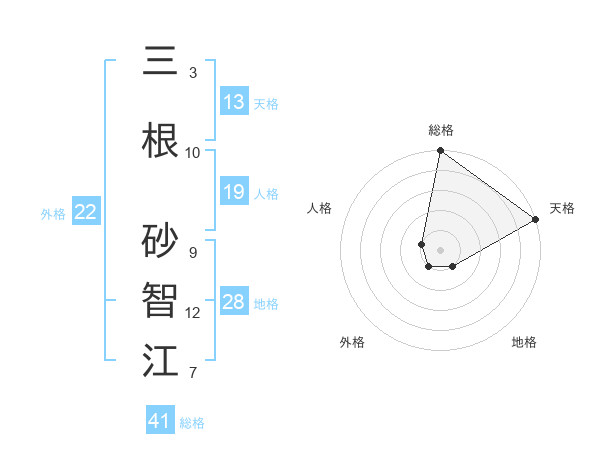 三根 砂智江さんの天格は13画の5点!