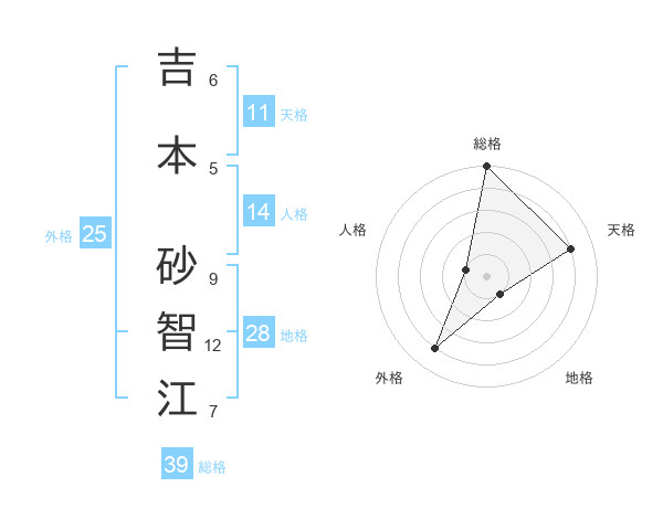 吉本 砂智江さんを姓名の画数から五運を鑑定