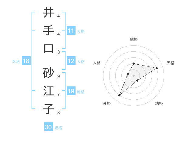 井手口 砂江子さんを姓名の画数から五運を鑑定