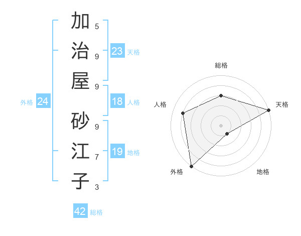 加治屋 砂江子さんを姓名の画数から五運を鑑定