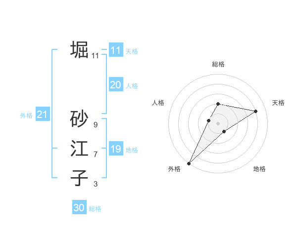 堀 砂江子さんの総格は30画の2点!