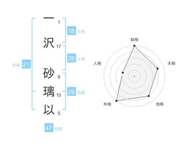 一沢 砂璃以さんを姓名の画数から五運を鑑定