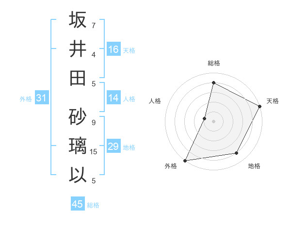 坂井田 砂璃以さんを姓名の画数から五運を鑑定