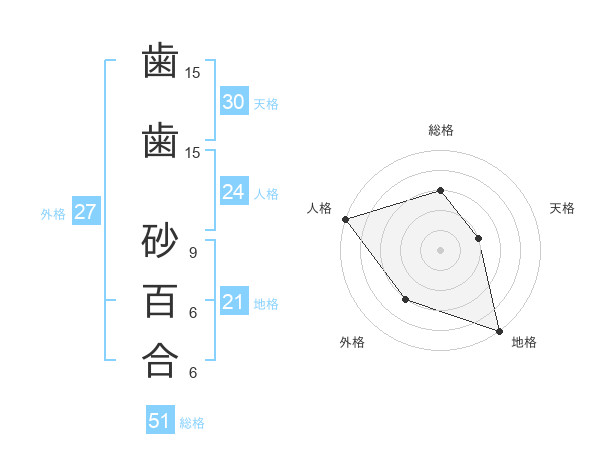 歯歯 砂百合さんを姓名の画数から五運を鑑定
