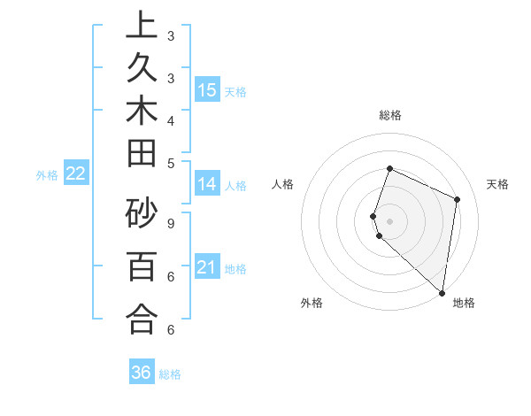 上久木田 砂百合さんを姓名の画数から五運を鑑定