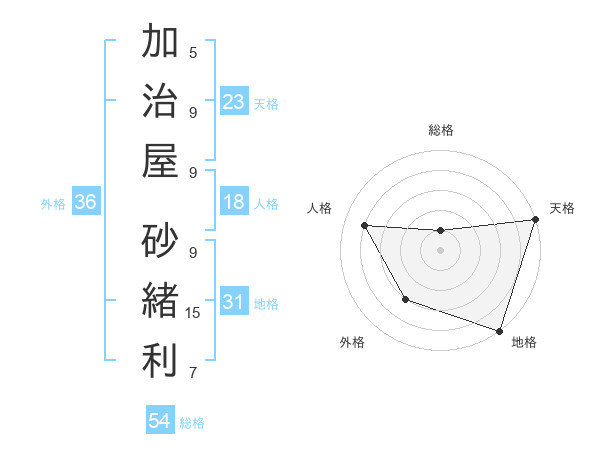 加治屋 砂緒利さんを姓名の画数から五運を鑑定