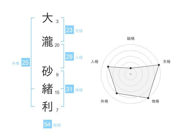 大瀧 砂緒利さんを姓名の画数から五運を鑑定