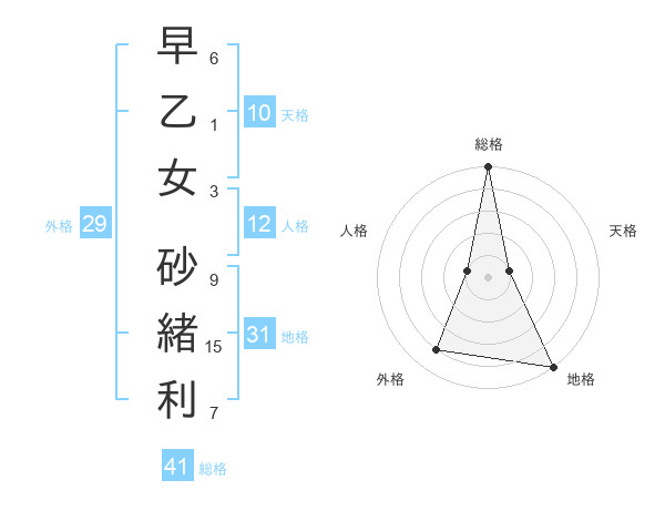早乙女 砂緒利さんを姓名の画数から五運を鑑定