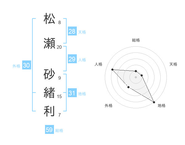 松瀬 砂緒利さんを姓名の画数から五運を鑑定