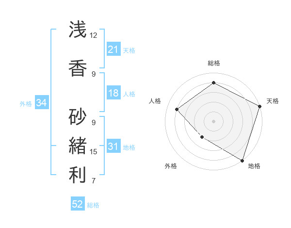 浅香 砂緒利さんを姓名の画数から五運を鑑定