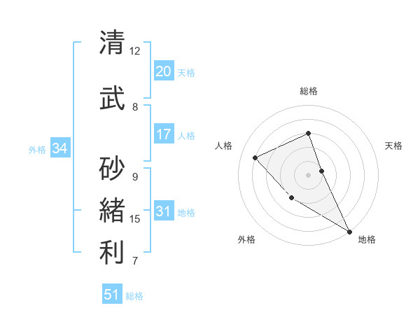 清武 砂緒利さんを姓名の画数から五運を鑑定