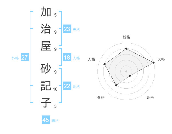 加治屋 砂記子さんを姓名の画数から五運を鑑定
