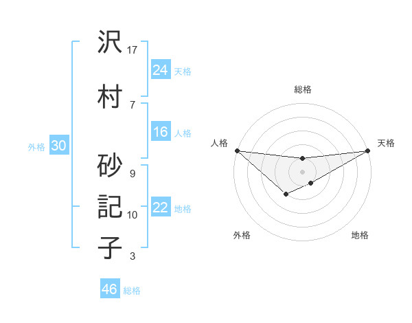 沢村 砂記子さんの天格は24画の5点!