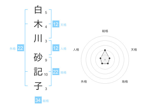 白木川 砂記子さんの地格は22画の1点!
