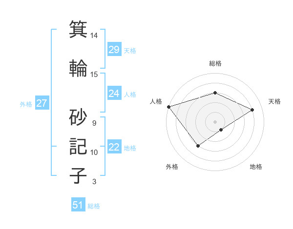 箕輪 砂記子さんの総格は51画の3点!