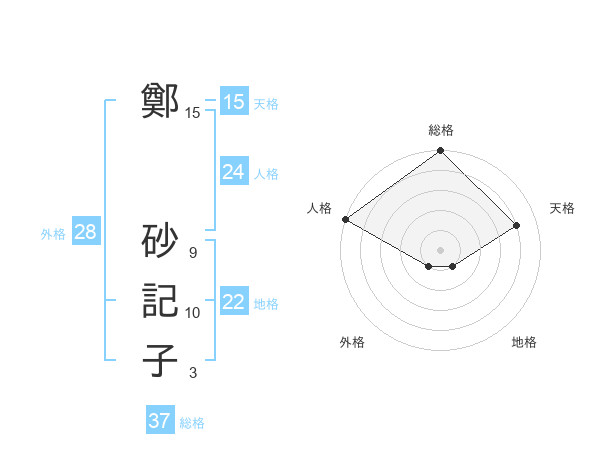 鄭 砂記子さんの総格は37画の5点!