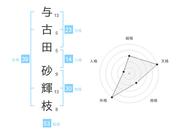 与古田 砂輝枝さんの天格は23画の5点!