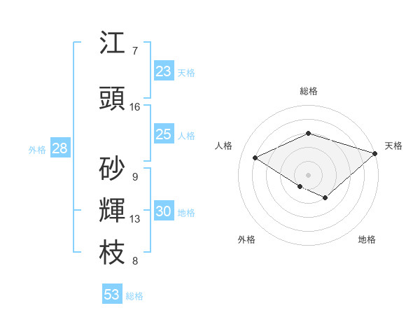 江頭 砂輝枝さんの天格は23画の5点!