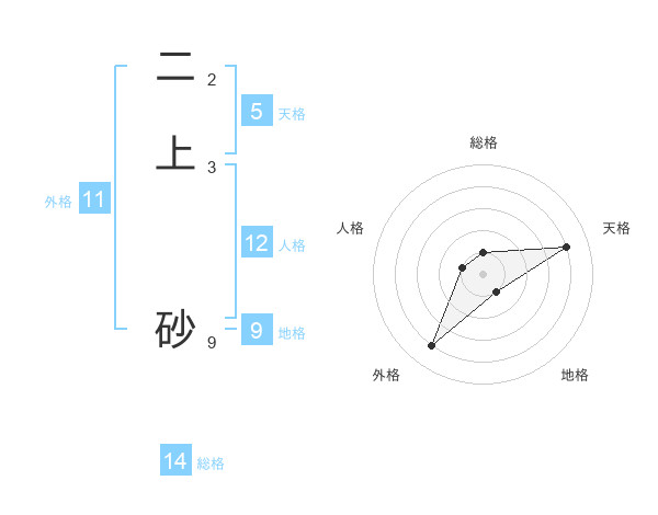 二上 砂さんを姓名の画数から五運を鑑定