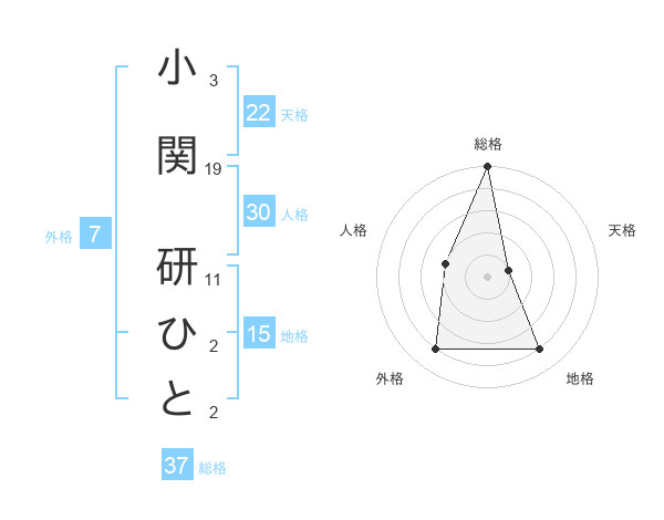 小関 研ひとさんを姓名の画数から五運を鑑定