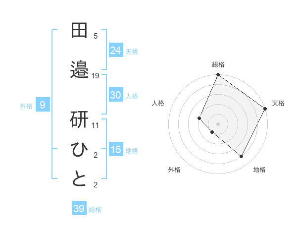 田邉 研ひとさんを姓名の画数から五運を鑑定