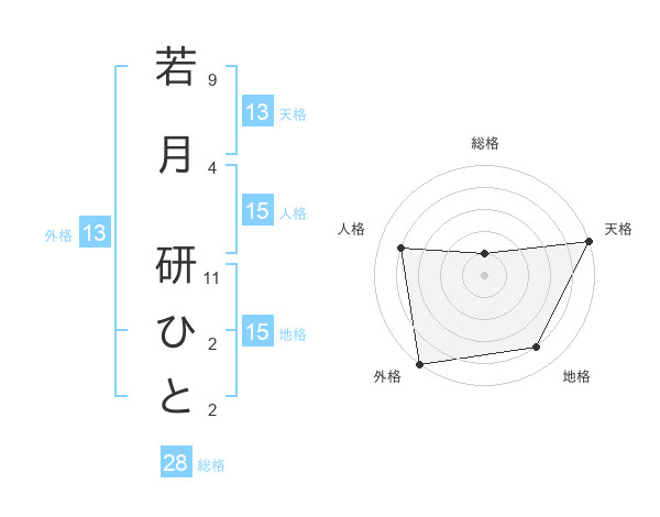 若月 研ひとさんの外格は13画の5点!