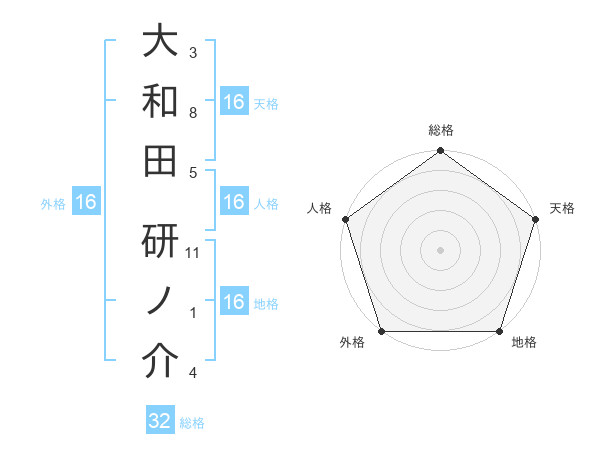 大和田 研ノ介さんを姓名の画数から五運を鑑定