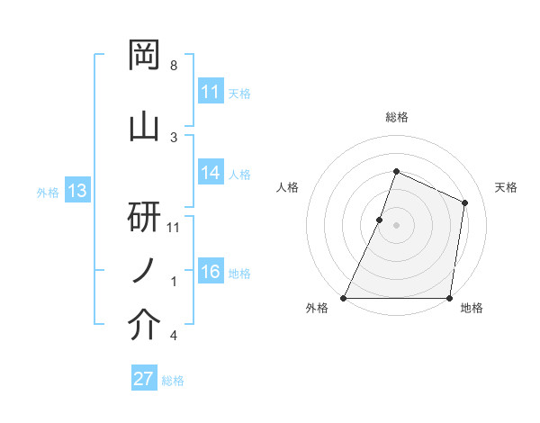 岡山 研ノ介さんを姓名の画数から五運を鑑定