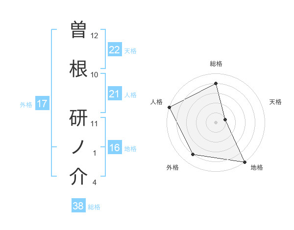 曽根 研ノ介さんを姓名の画数から五運を鑑定