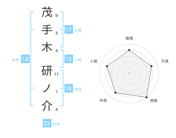 茂手木 研ノ介さんの天格は17画の4点!