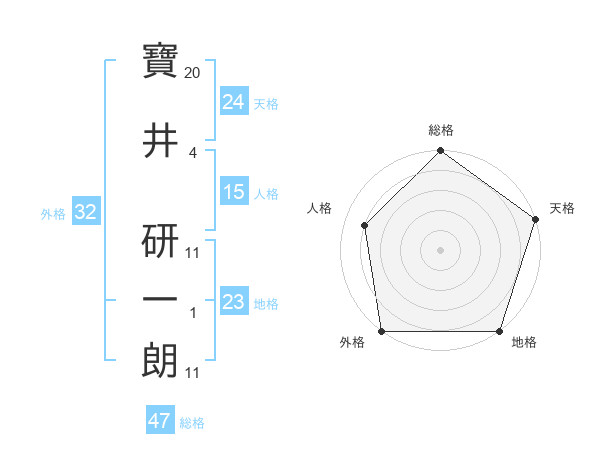 寶井 研一朗さんを姓名の画数から五運を鑑定