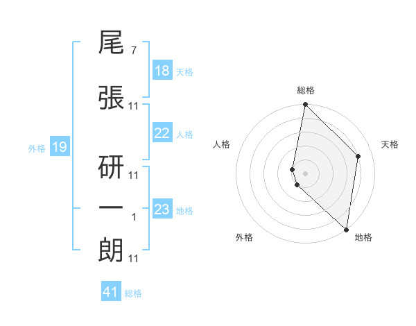 尾張 研一朗さんを姓名の画数から五運を鑑定