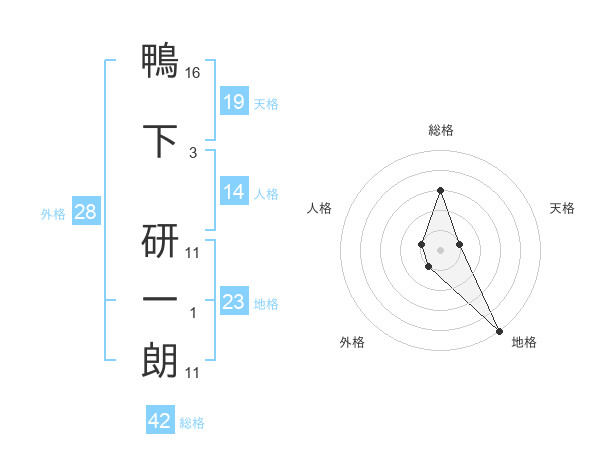 鴨下 研一朗さんを姓名の画数から五運を鑑定