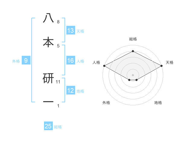 八本 研一さんの総格は25画の4点!