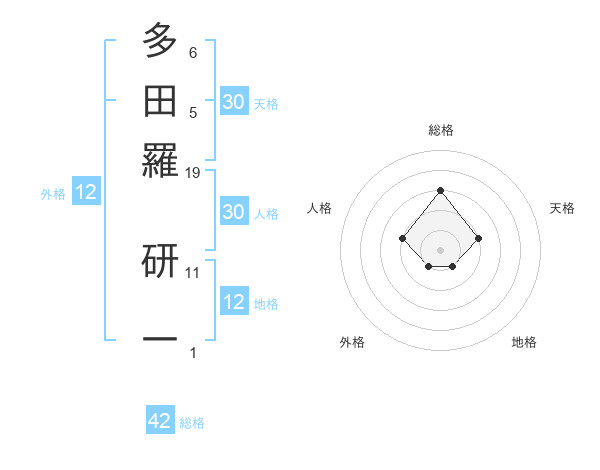 多田羅 研一さんを姓名の画数から五運を鑑定