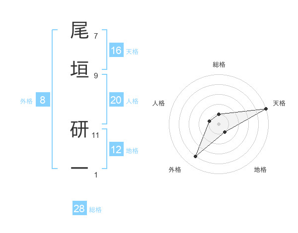 尾垣 研一さんを姓名の画数から五運を鑑定