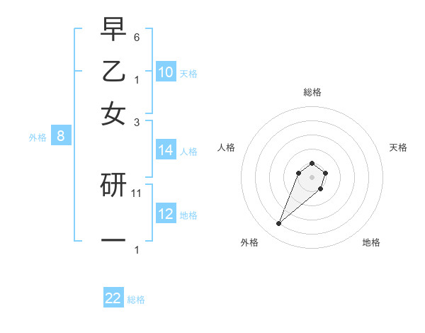 早乙女 研一さんの総格は22画の1点!