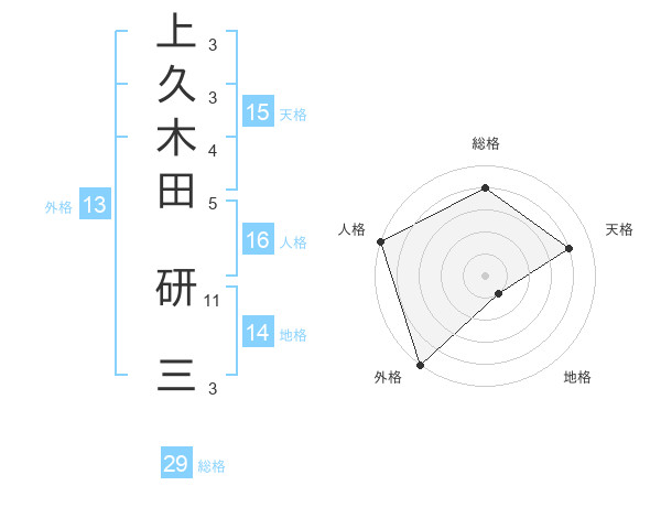 上久木田 研三さんを姓名の画数から五運を鑑定