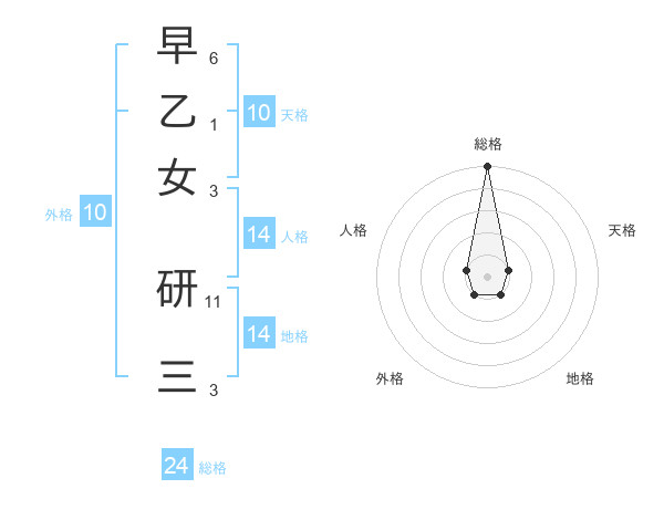 早乙女 研三さんの総格は24画の5点!