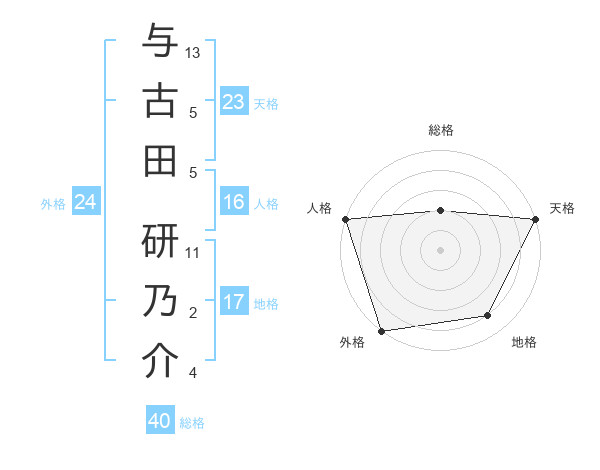 与古田 研乃介さんの外格は24画の5点!