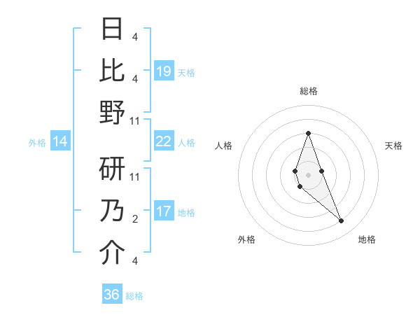 日比野 研乃介さんを姓名の画数から五運を鑑定