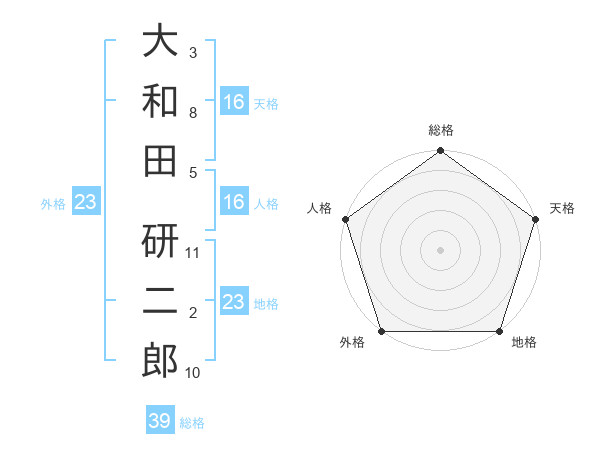 大和田 研二郎さんを姓名の画数から五運を鑑定