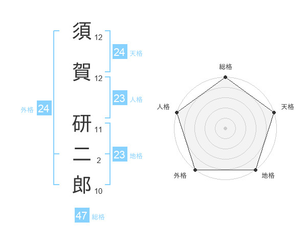 須賀 研二郎さんの総格は47画の5点