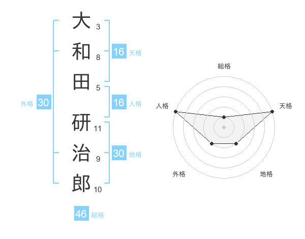 大和田 研治郎さんを姓名の画数から五運を鑑定
