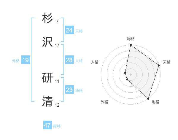 杉沢 研清さんを姓名の画数から五運を鑑定