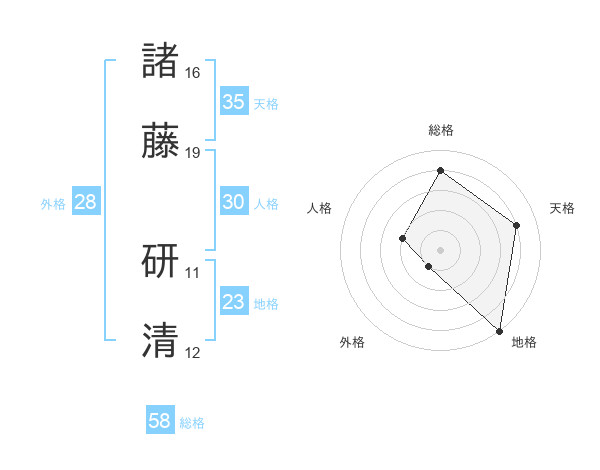 諸藤 研清さんを姓名の画数から五運を鑑定