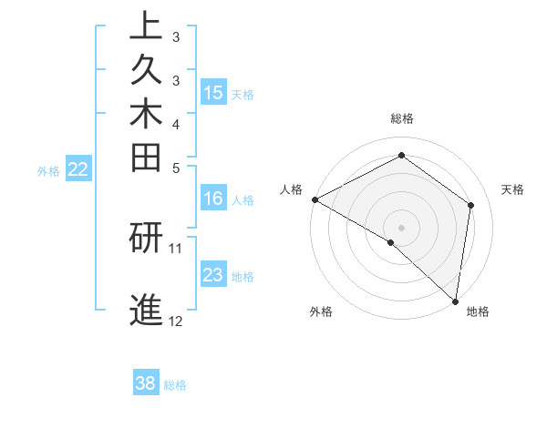 上久木田 研進さんを姓名の画数から五運を鑑定