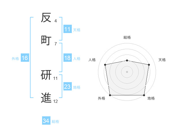 反町 研進さんの地格は23画の5点!