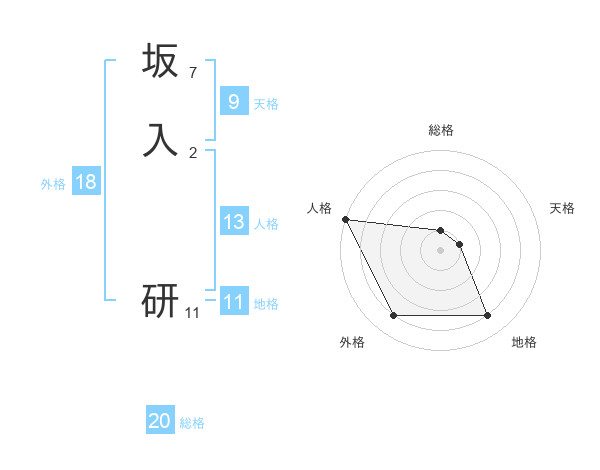 坂入 研さんの総格は20画の1点!
